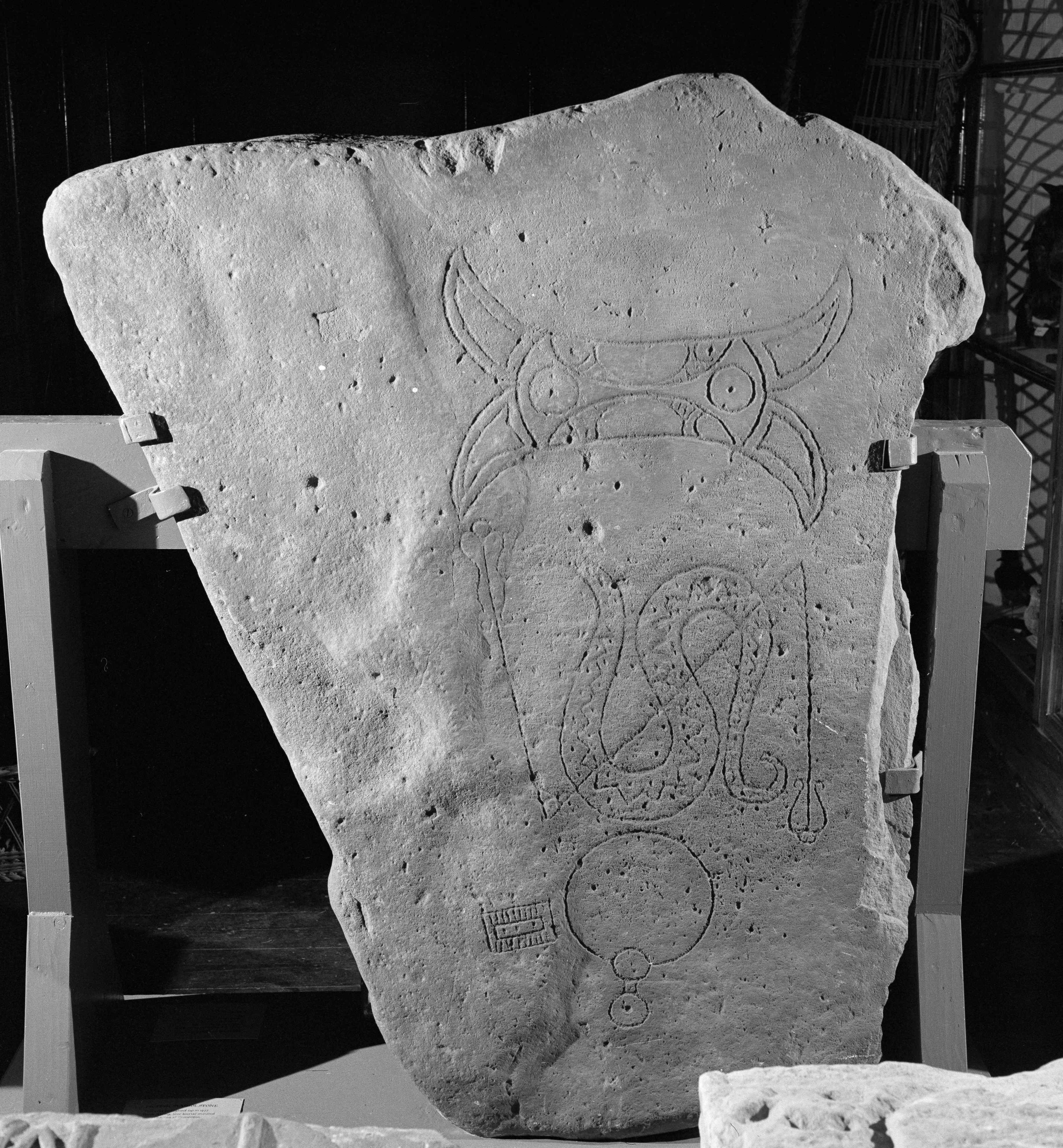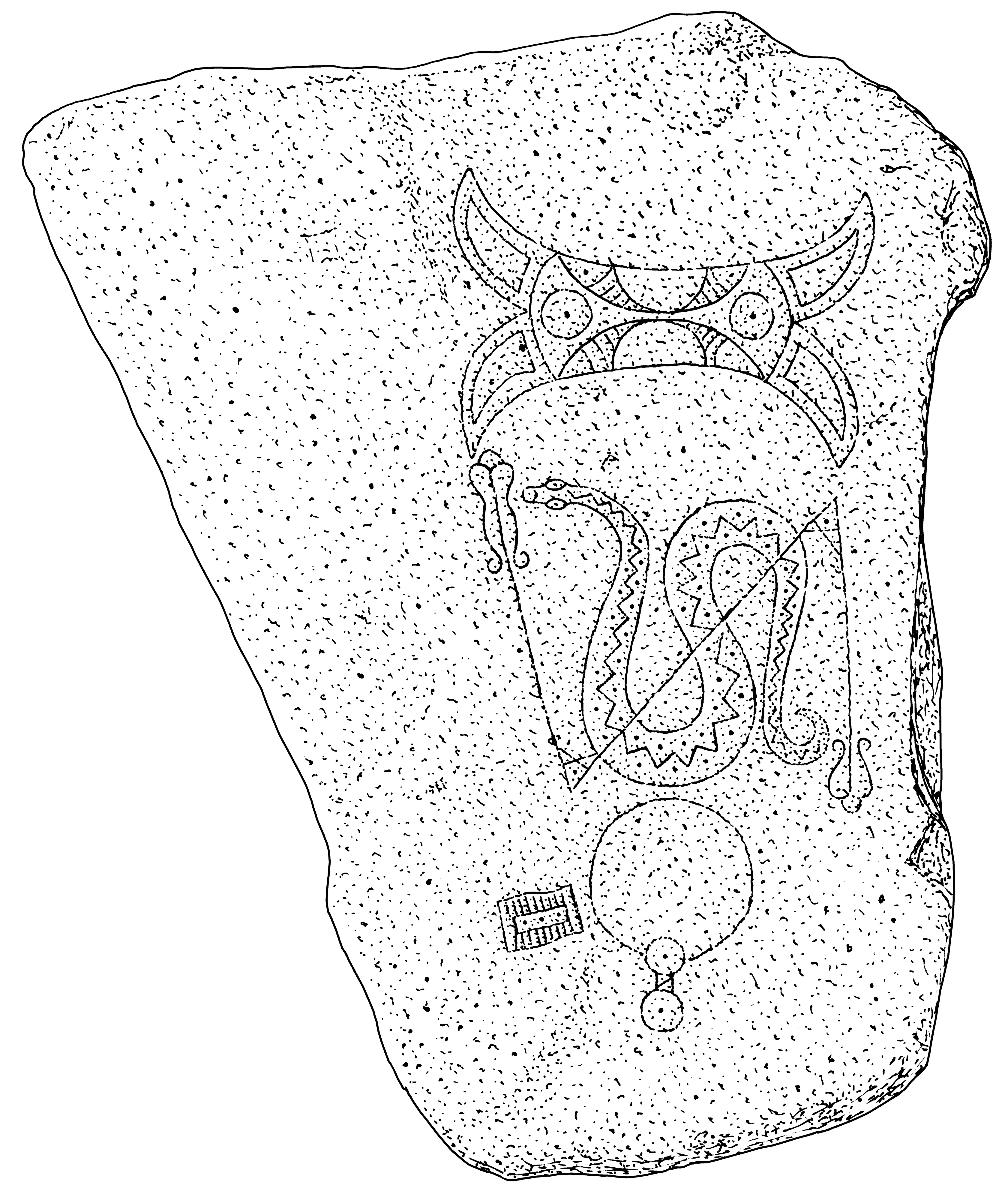 But the stone is unusual as it doesn’t have a large area at the bottom which can be dug into the earth to support the stone upright, like most symbol stones do. So we don’t know whether this symbol stone was laid flat on top of the grave, or whether it may have been part of some wooden structure above it. And there are a few other stones like this around, so were the Picts sometimes making symbol stones as part of a shrine?