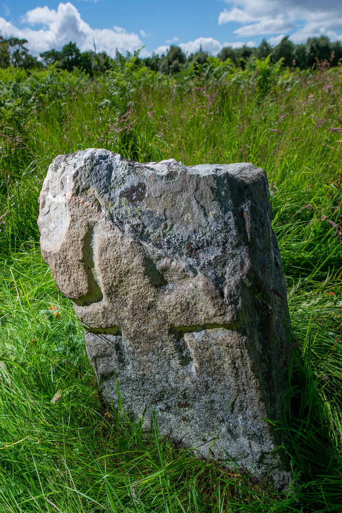 The Red Priest’s Stone is a single low stone with a cross deeply incised on its northern face, and may date to the 7th or 8th century AD. The stone may originally have been a girth-cross (marking the boundary of church lands and an indicator that this was a place of sanctuary). One theory is that it may have been stolen from St Duthac’s Chapel In Tain by a Clan MacKay chief’s son in 1429.